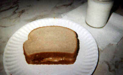 This is a pic of what I decided to have for lunch one day. In case you don't know, it's a peanut butter and jelly sandwich. A staple for anyone looking for a quick lunch but doesn't want to fill up too much (unless you're the type like me that globs on alot of peanut butter because it tastes sooooo good). Incidentally, my mother hates peanut butter, but her diet program sorta tells her to have at least a tablespoon for protein.